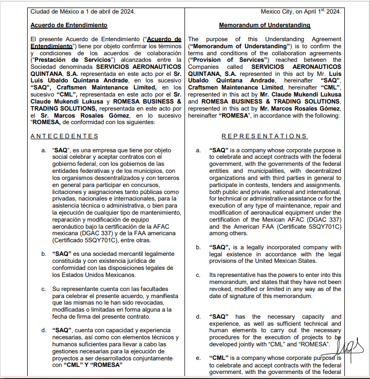 Elevating Aviation Excellence: Craftsmen Maintenance Limited Secures a Contract with Global Leaders SAQ and ROMESA, an Experienced and Reputable MRO in Mexico