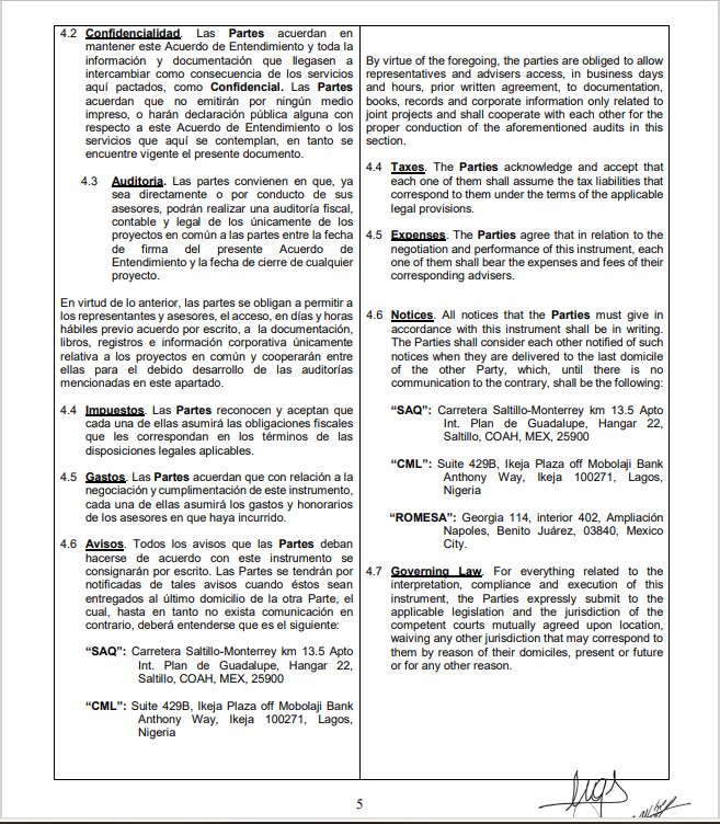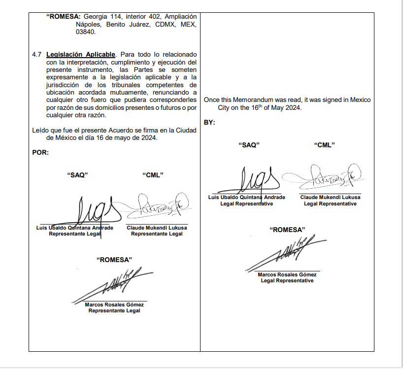 – Legal Standing: ROMESA is legally incorporated in the United Mexican States.